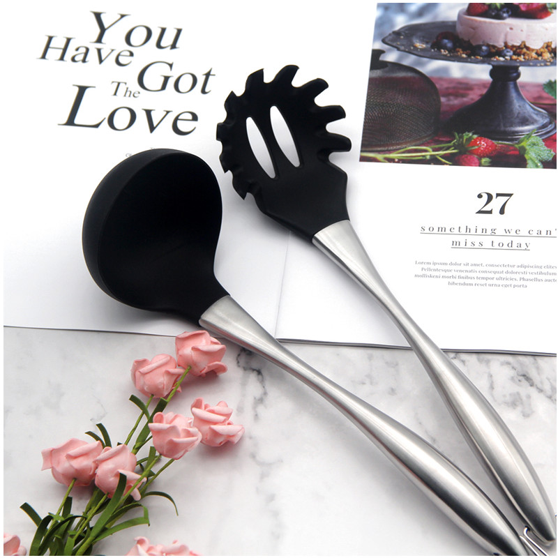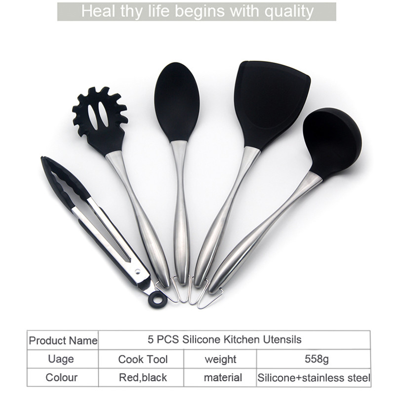 Amazon hot selling food grade material 5 piece stainless steel cooking utensils