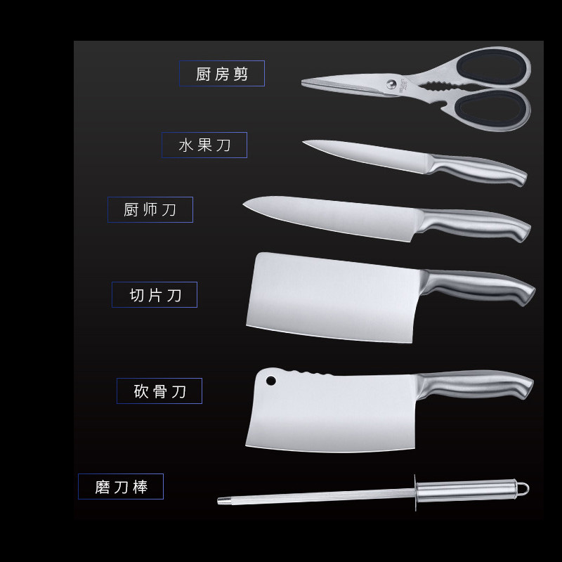 Waistline Stainless Steel Kitchen Knife Slicing Knife Cleaver Chef’s Knife Seven-piece Gift Set